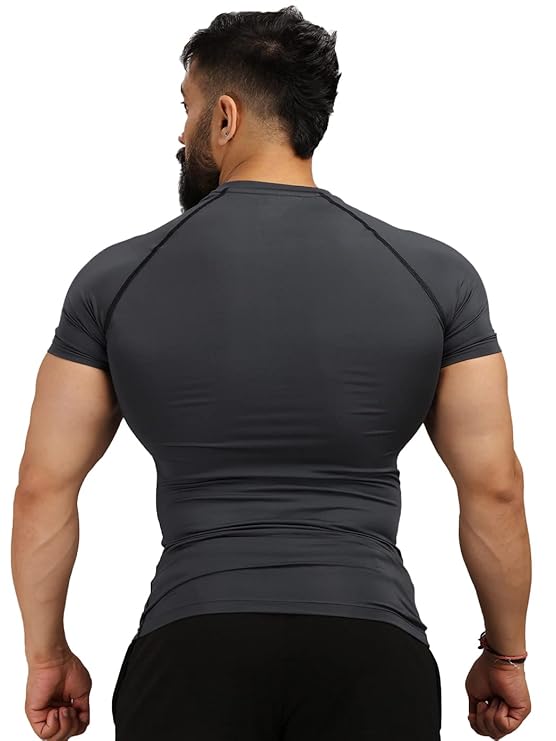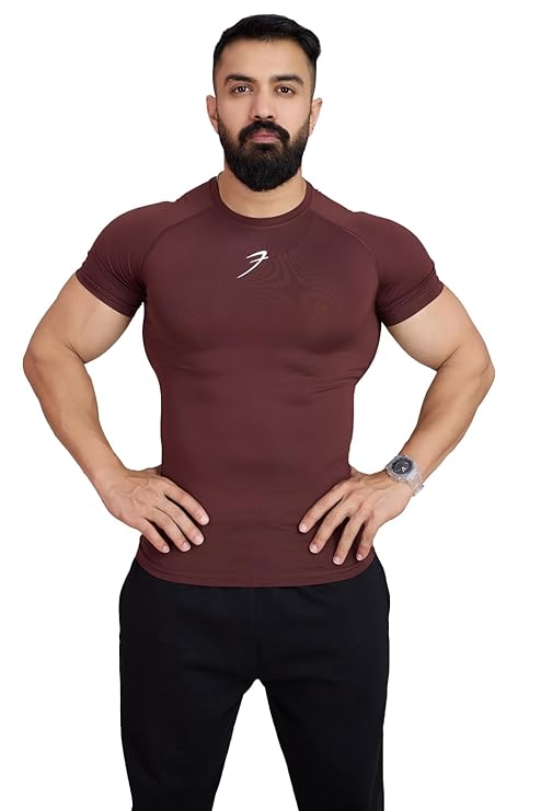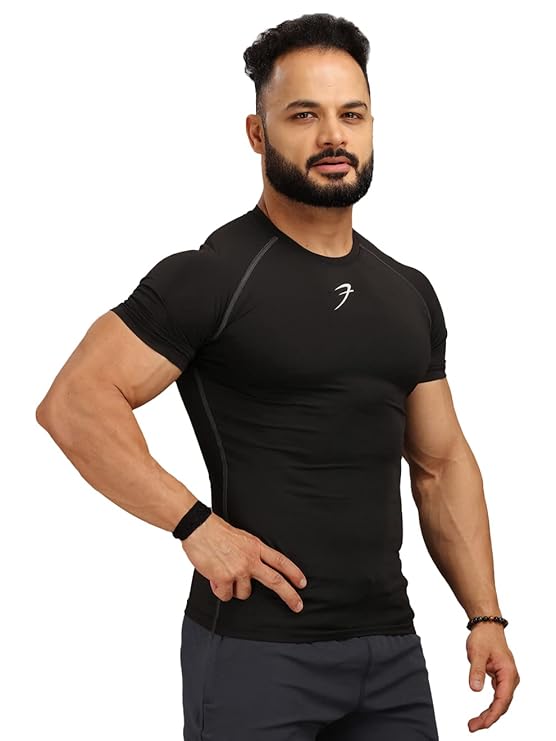 FUAARK Men’s Half Sleeve Compression T-Shirt – Athletic Base Layer for Fitness